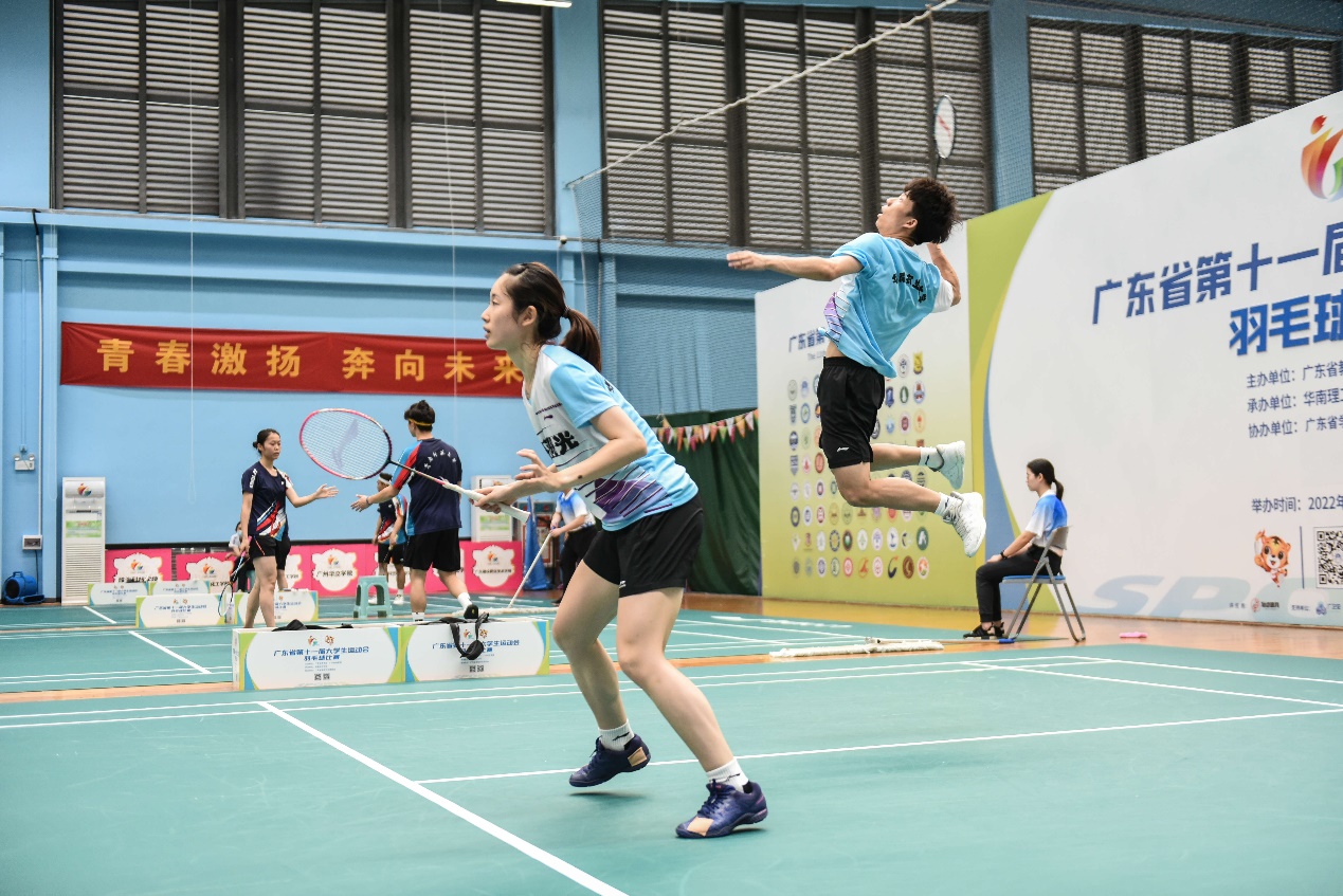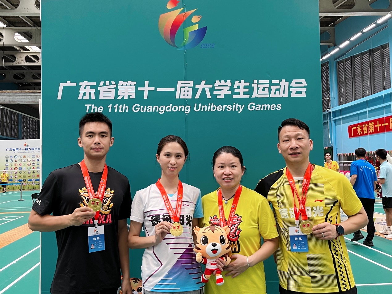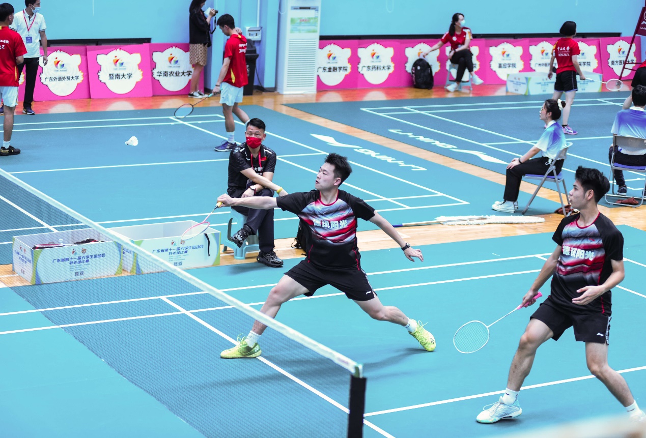 2022年6月3日至5日,第十一届广东省大学生运动会羽毛球项目在华南理工大学举行。我校高水平羽毛球队在学校和体育教学研究部领导的鼎力支持下,以吕立副主任为领队,以曾海清、周倩怡、钟频、吴瑾龙为教练员,共同带领我校高水平羽毛球队12队员参加比赛,与百余所高校同场竞技。