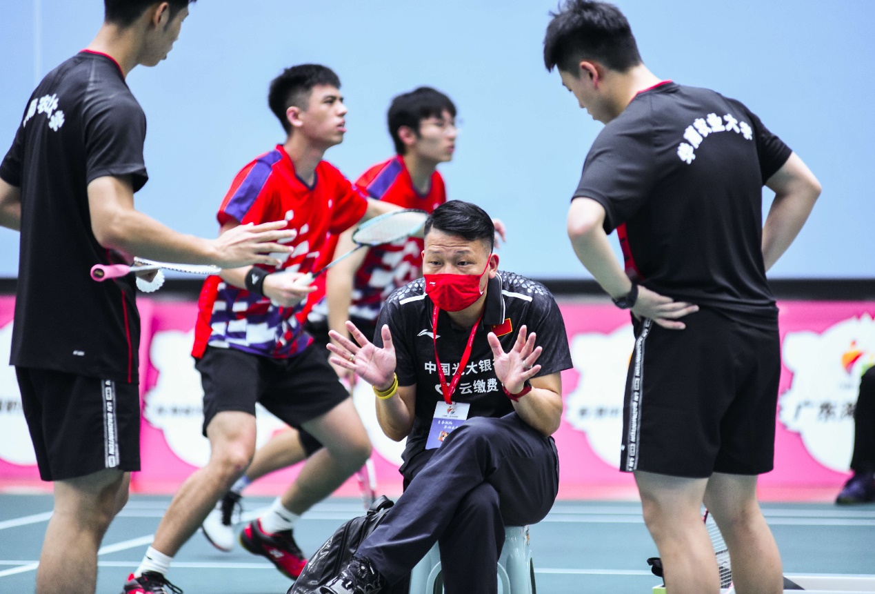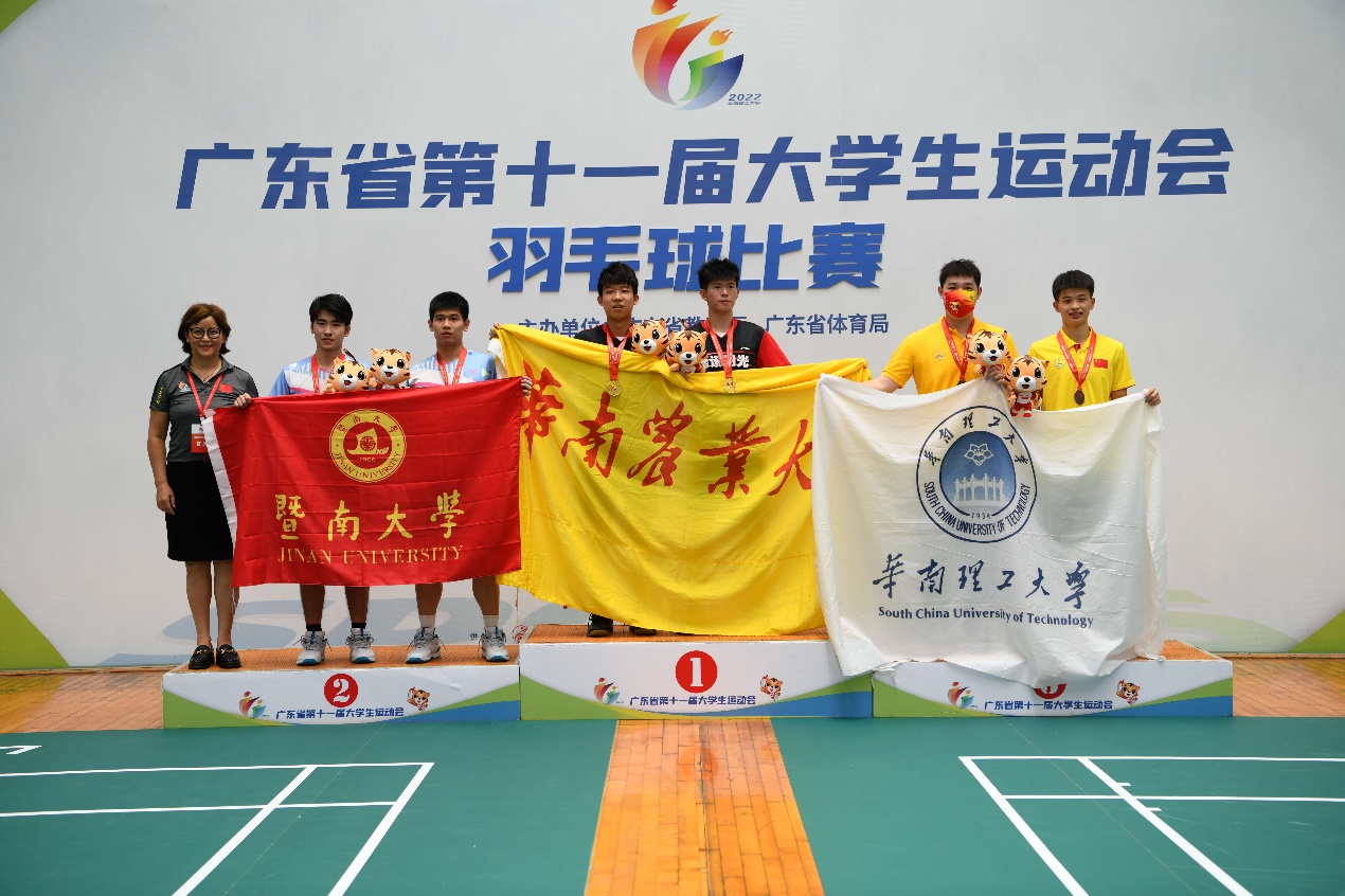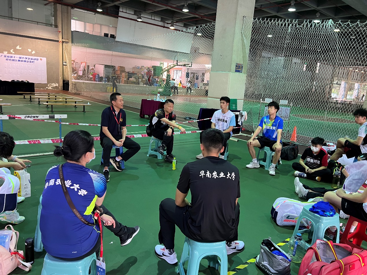 2022年6月3日至5日,第十一届广东省大学生运动会羽毛球项目在华南理工大学举行。我校高水平羽毛球队在学校和体育教学研究部领导的鼎力支持下,以吕立副主任为领队,以曾海清、周倩怡、钟频、吴瑾龙为教练员,共同带领我校高水平羽毛球队12队员参加比赛,与百余所高校同场竞技。